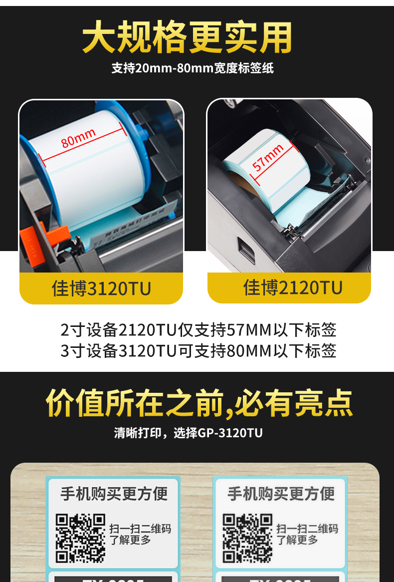 Máy in nhãn nhiệt Jiabo GP3120TU nhãn dán quần áo giá siêu thị nhãn hiệu dược phẩm đăng ký tiền mặt trà sữa điện thoại di động Bluetooth QR mã bánh mì kho mã vạch máy in - Thiết bị mua / quét mã vạch Thiết bị mua / quét mã vạch