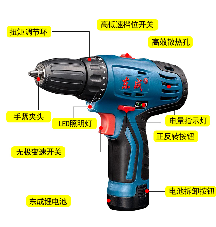 máy khoan bàn Pin lithium Dongcheng 9 / 10-10 sạc khoan tốc độ gấp đôi / tốc độ đơn máy cắt cây cầm tay Dụng cụ điện