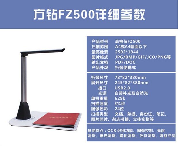 Máy khoan vuông Gao Paiyi FZ500 A4 máy quét cầm tay HD tốc độ cao Gao Paiyi 5 triệu pixel nhiều shot - Máy quét Máy quét