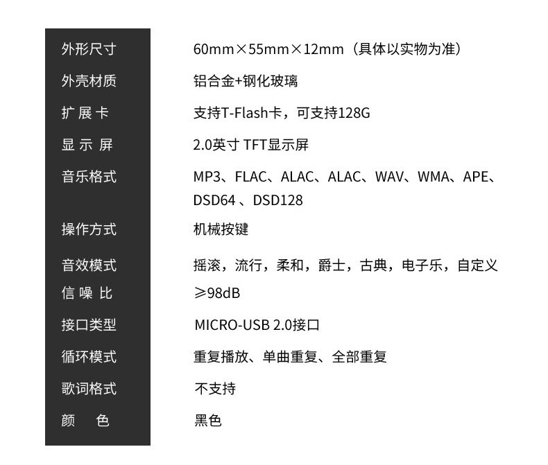 Tiêu chuẩn chính thức: Thân máy HiFiMP3 không có bộ nhớ + gửi tai nghe + gửi tài nguyên nhạc