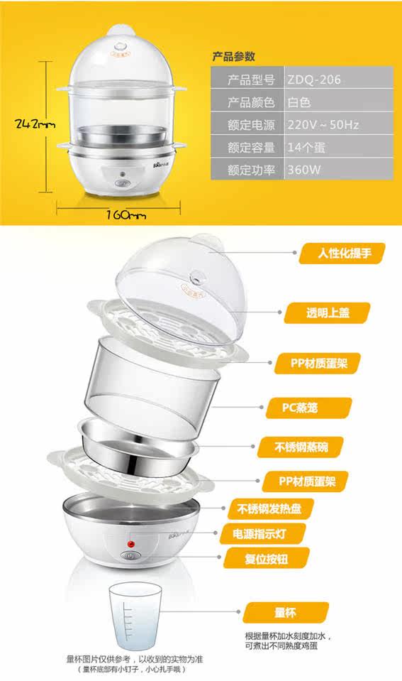 nồi lẩu mini đa năng Máy xay trứng đa năng mini ZDQ-206 hai lớp bằng thép không gỉ, máy hấp trứng tự động tắt nguồn nồi nấu xôi mini Nồi trứng