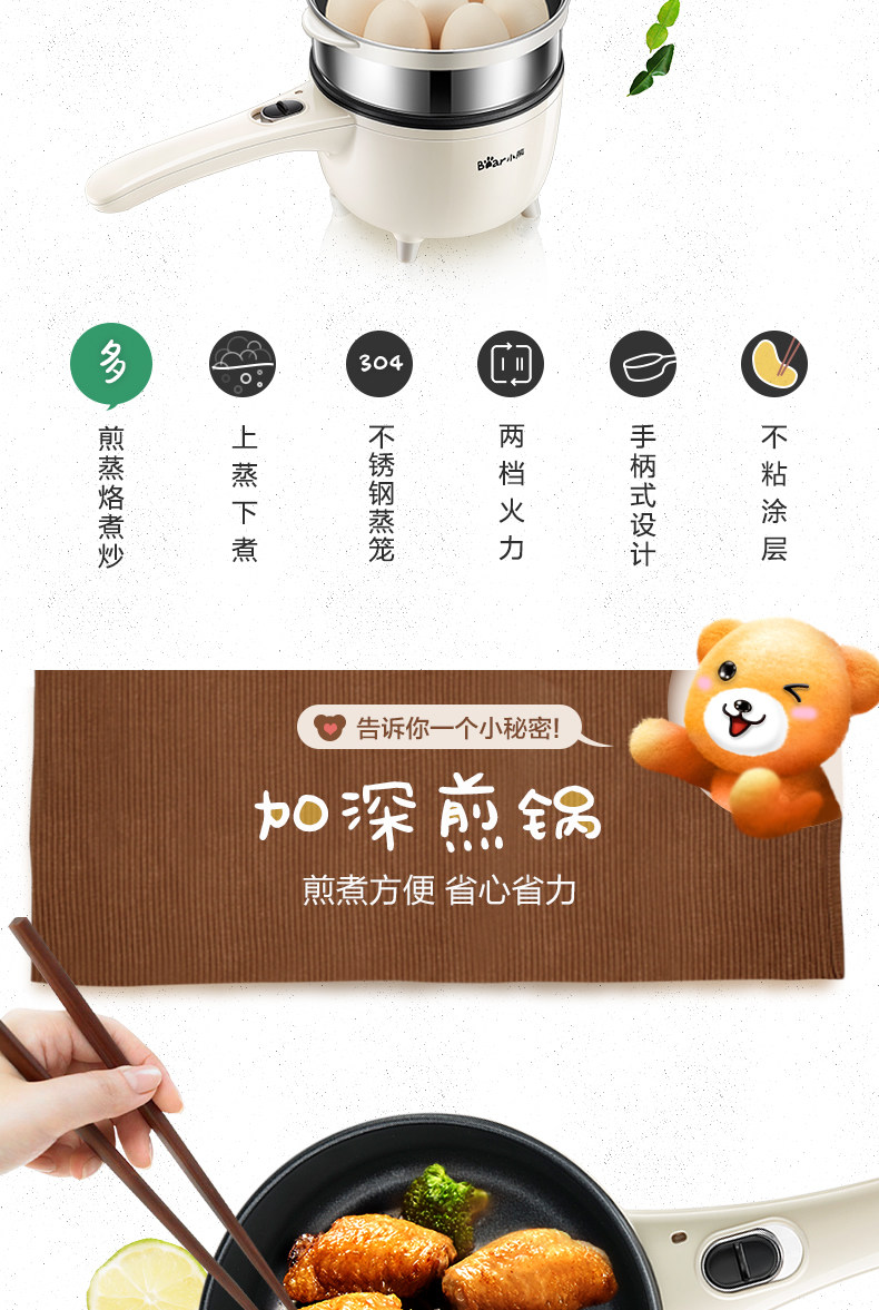 nồi lẩu mini nhật bản Gấu trứng nồi đôi ký túc xá nồi nhà ấm đun nước điện nhỏ tự động ăn sáng máy đa năng điện chảo - Nồi trứng ly nấu mì Nồi trứng