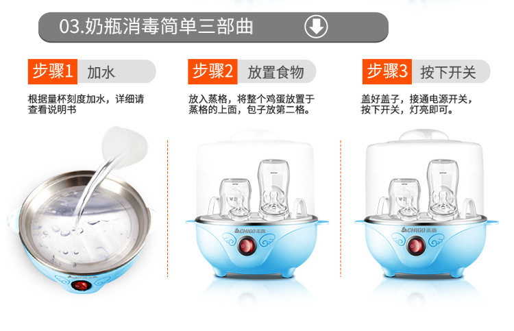 nồi lẩu mini trung quốc Chigo trứng hai lớp hấp trứng gia đình tự động tắt nguồn trứng nhỏ hấp 羹 máy ăn sáng đa chức năng xửng hấp điện