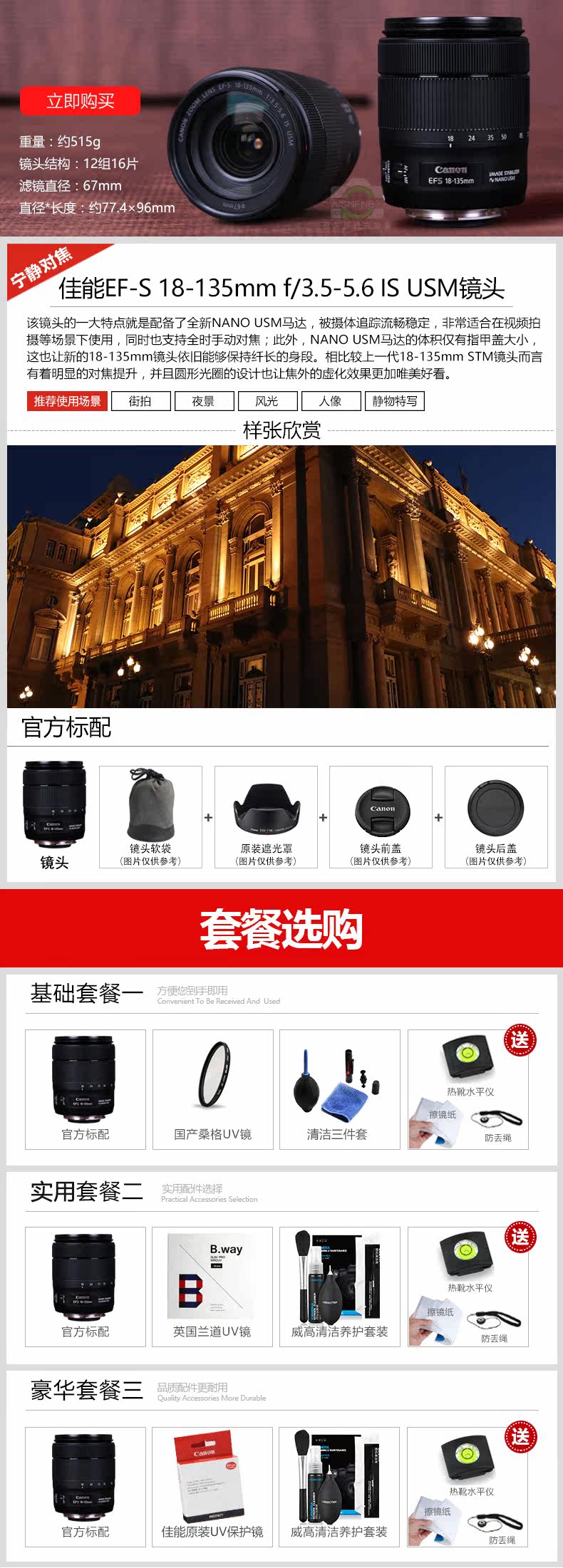 Ống kính máy ảnh DSLR Canon 18-135 usm ống kính EF-S 18-135mm f3.5-5.6 IS USM Máy ảnh SLR