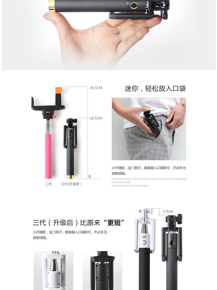 Thời trang mới 3 thế hệ Bluetooth không dây selfie dính phụ kiện điện thoại di động phổ quát hẹn giờ Phụ kiện điện thoại di động