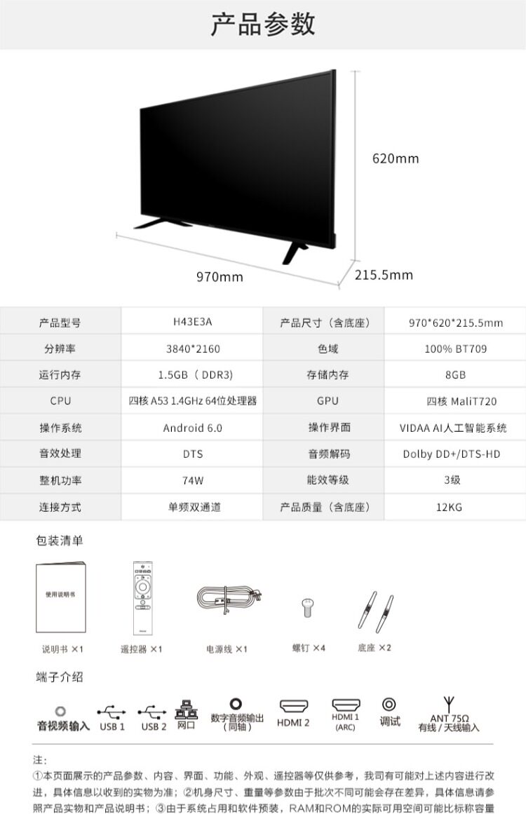 tivi casper TV LCD màn hình phẳng thông minh 4K HD Hisense / Hisense H43E3A 43 inch tivi samsung 32 inch